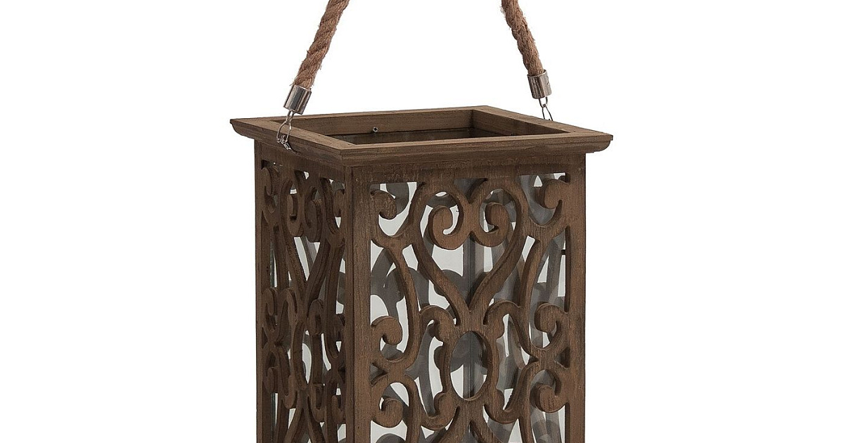 Изготовлен из ели в сочетании со стеклом и веревкой.