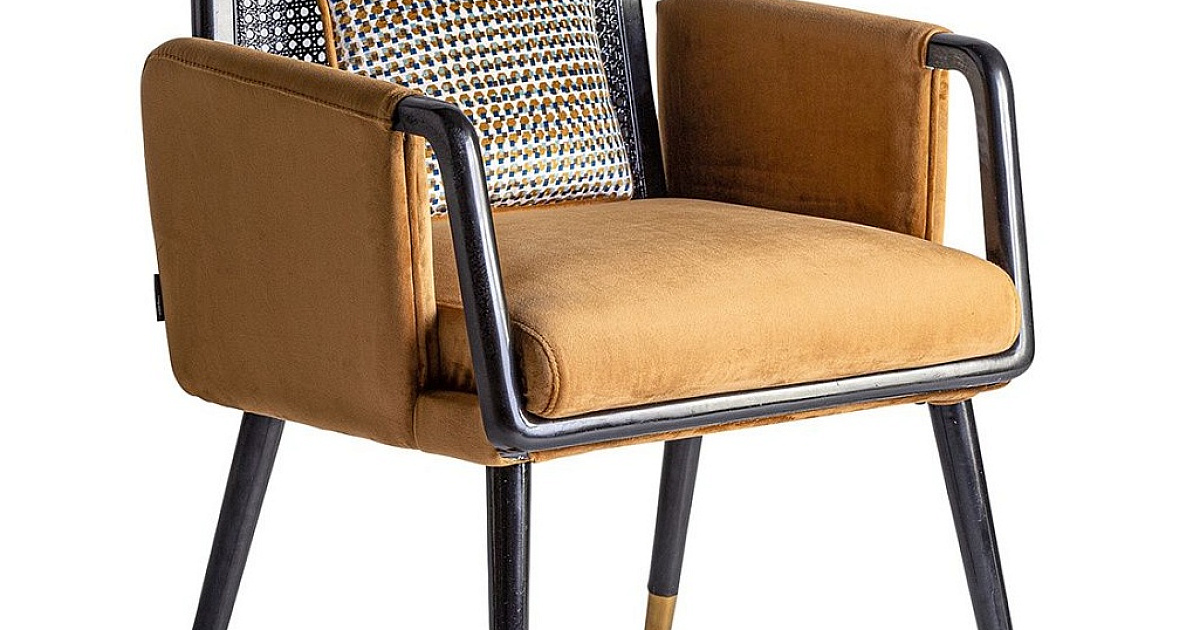Стул BRILLION — элемент мебели для гостиной в стиле арт-деко. Здесь потрясающий дизайн создан необычными формами и сочетанием разных фактур. Бархатная обивка в горчичном цвете демонстрирует тепло и мягкость. А натуральная древесина двух видов создает уникальный вид. Стул BRILLION поднимет интерьер вашей гостиной на новый уровень! Стул имеет деревянный каркас, ножки которого сделаны из массива орехового дерева. Они покрыты лаком и золотой эмалью, что придает им элегантный вид и защищает от негативного воздействия внешней среды. На ножках установлены наконечники, которые улучшают устойчивость и защищают напольное покрытие от повреждений. Спинка сделана из натурального ротанга и также покрыта защитным слоем лака. Обивка имеет бархатную фактуру, плотная, с высокой степенью стойкости к истиранию. Максимальная нагрузка на стул не должна превышать 130 кг. Вес: 8,7 кг. Стул предназначен для эксплуатации только в помещении. Для чистки использовать деликатные моющие средства и мягкую салфетку. Потребуется минимальная сборка. Инструкция и крепеж включены в комплектацию.