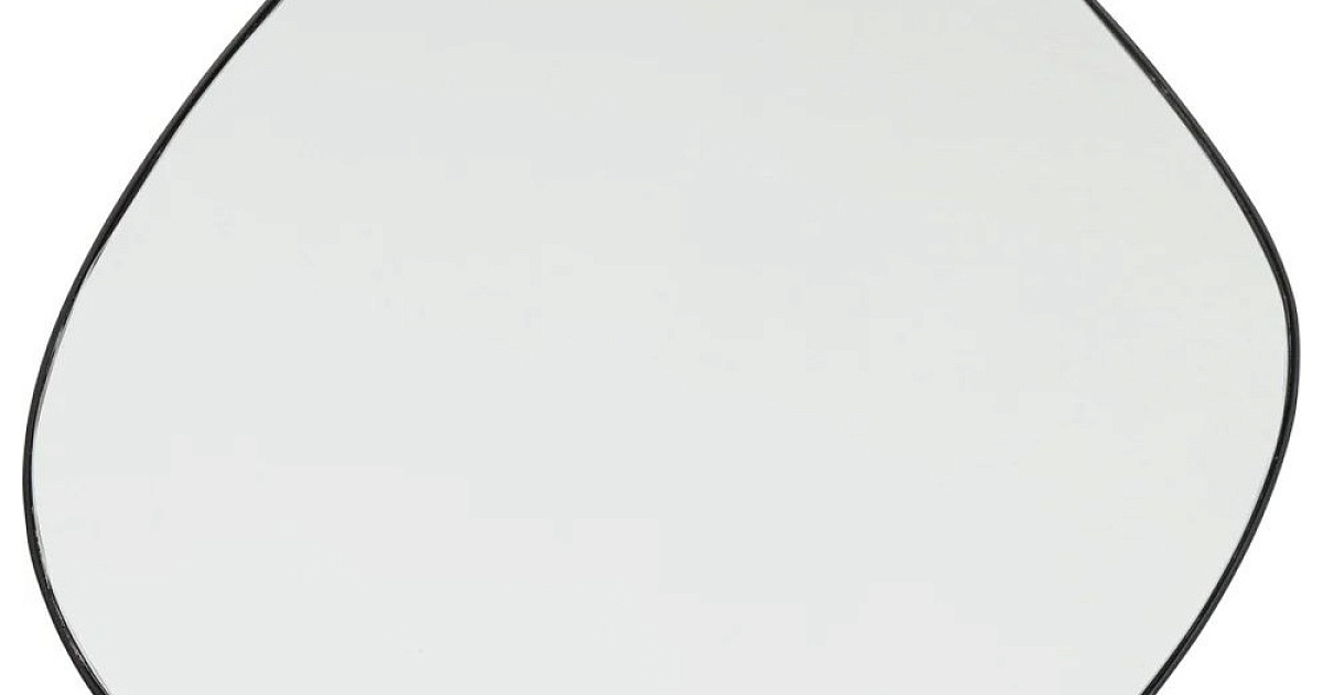 Большое настенное зеркало органичной формы с узкой стальной черной рамой - простое, но очень эффектное!