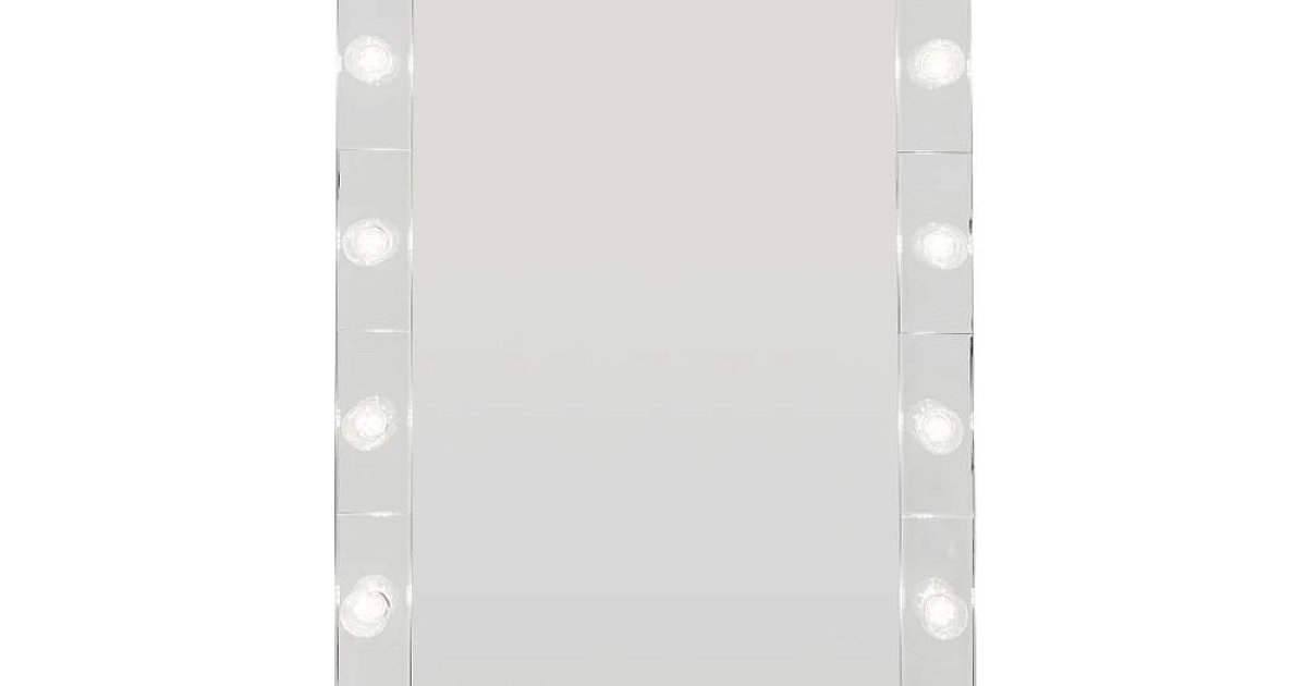 Большое прямоугольное напольное зеркало с подсветкой для лампочек по всем сторонам.