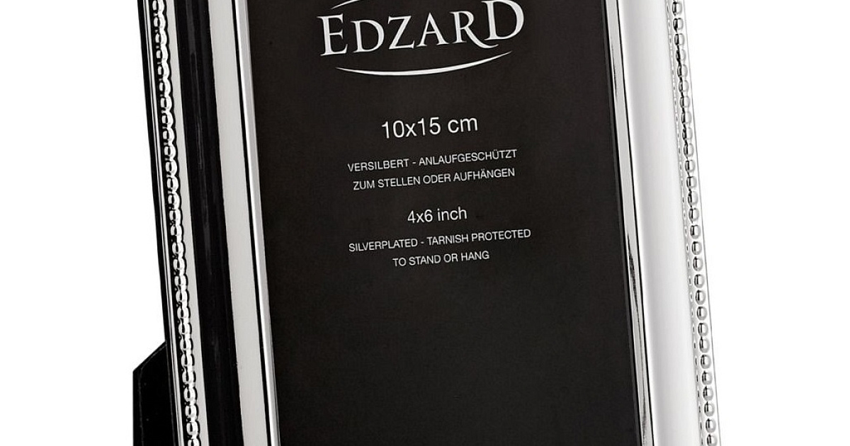 Немецкий бренд Edzard представляет широкий выбор декоративных рамок для фотографий, которые загипнотизируют вас неповторимым блеском серебра. Изделия покрыты уникальной защитной плёнкой, которая гарантирует долгий срок службы без какого-либо специального ухода. Лаконичный элегантный дизайн вписывается в любой интерьер и дарит радость надолго. Самые ценные и красивые моменты жизни заслуживают того, чтобы получить блестящее обрамление. Рамку для фото можно установить как в портретном, так и в альбомном формате. Каркас также оснащён подвесами для размещения на стене.