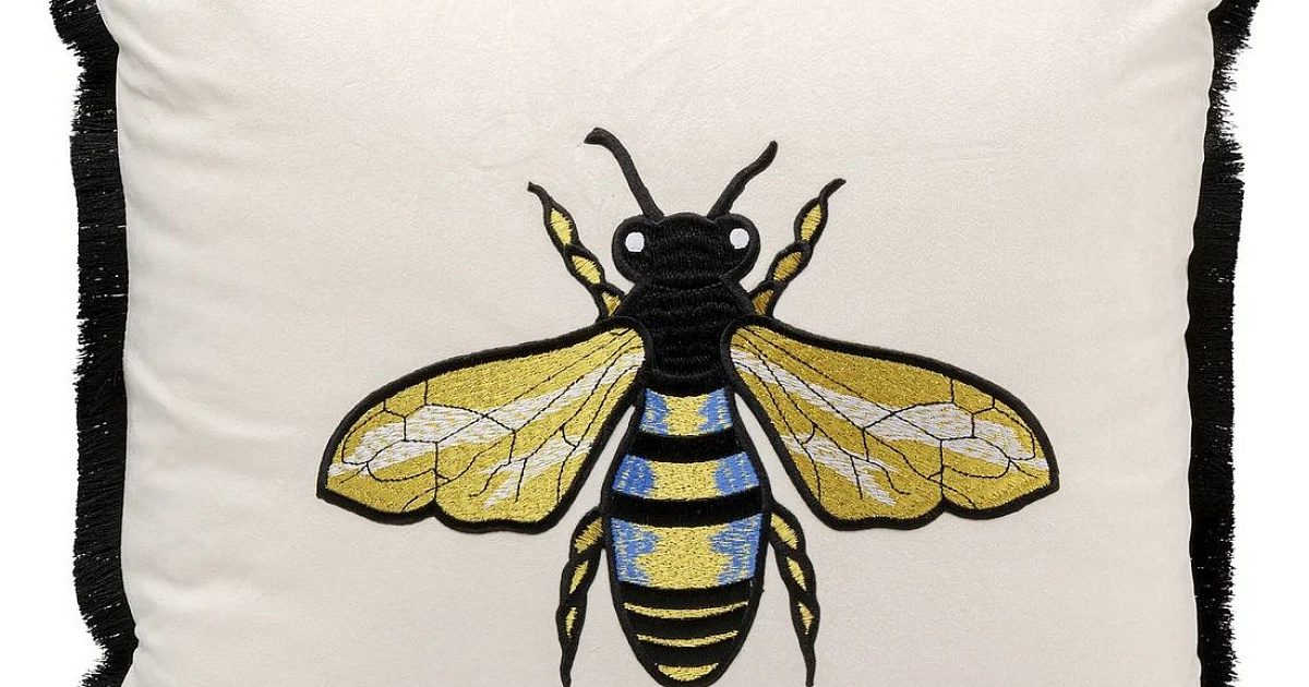 Декоративный мотив с вышитой пчелой, богато украшенной деталями.
