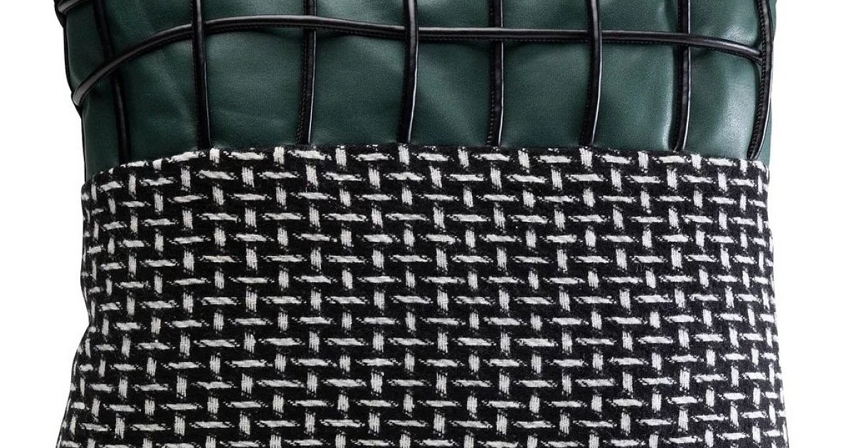 Роскошная подушка с текстурным сочетанием черного, белого и зеленого цветов.