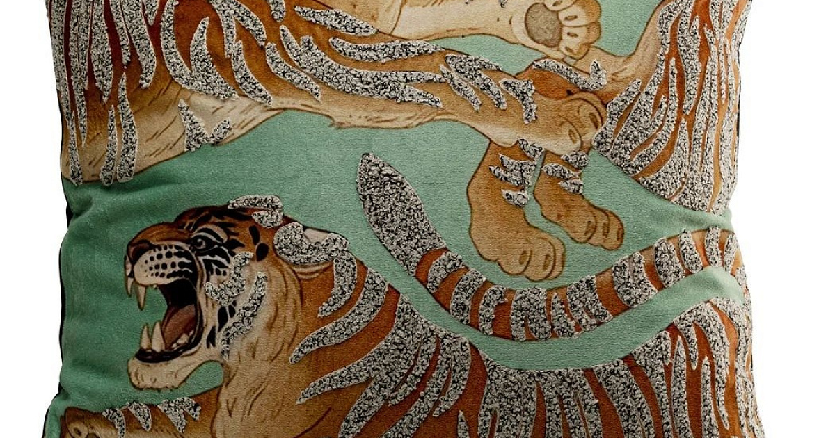 Подушка вдохновляет своим роскошным тигровым узором и яркими цветовыми тонами.