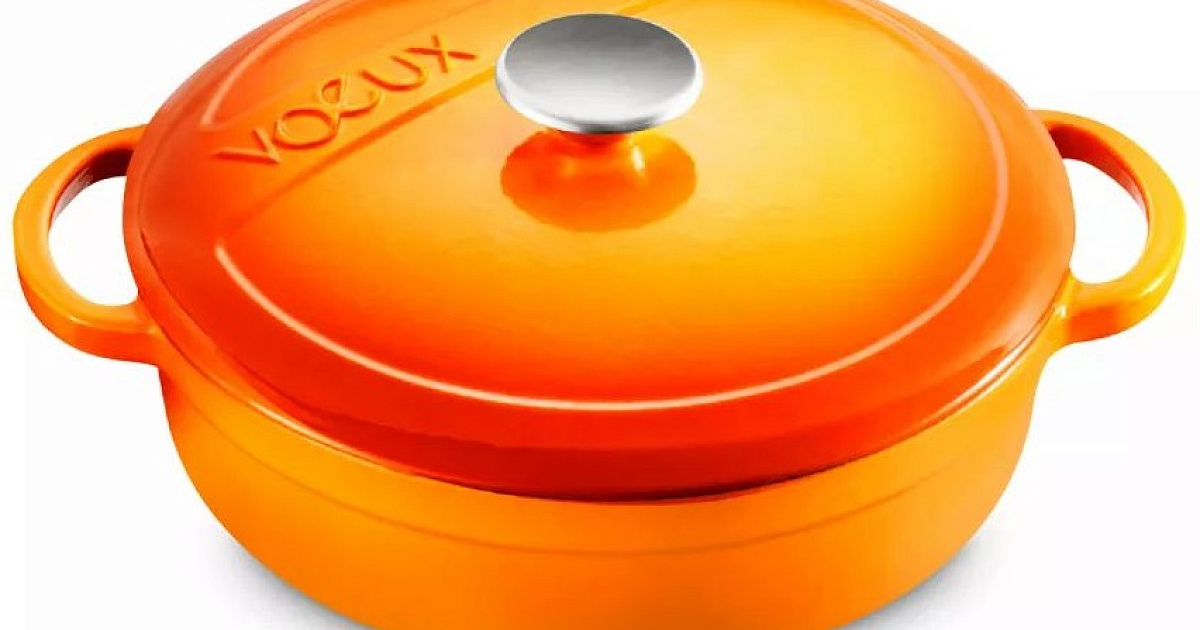 Чугунная посуда Voeux серии Amusant в оранжевом цвете, благодаря широкому спектру применения, свойствам, улучшающим вкус, и элегантному дизайну, который доставляет вам удовольствие каждый раз, когда вы смотрите на нее, станет самым ценным атрибутом вашей кухни.
