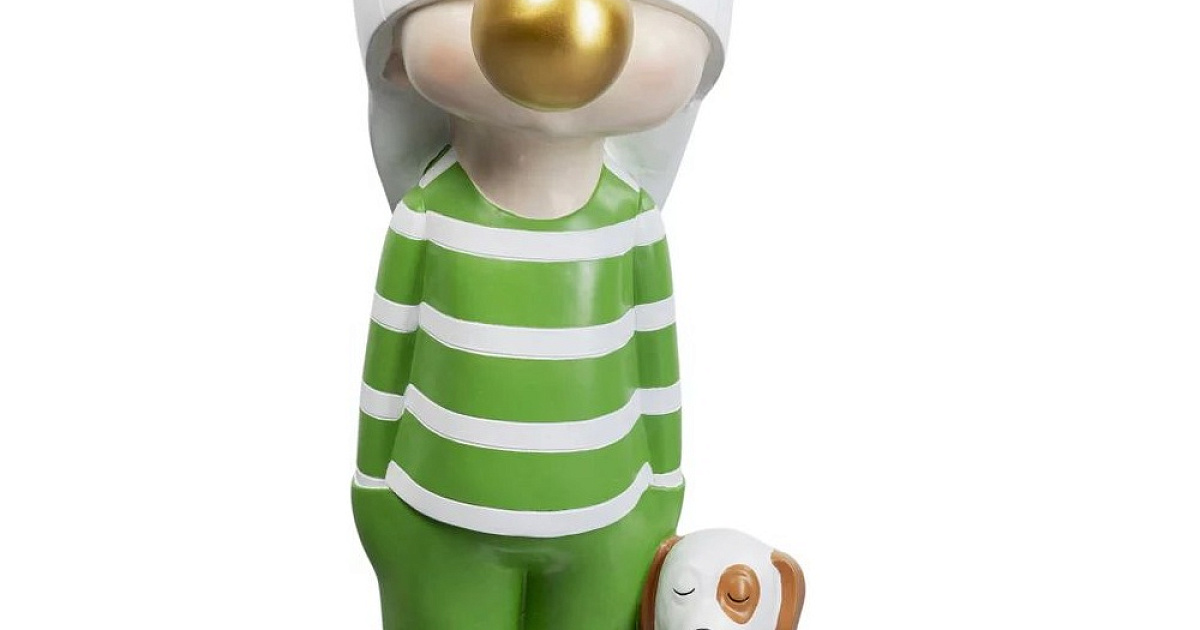 Мальчик с пузырьком жевательной резинки изготовлен из полирезина и расписан вручную.