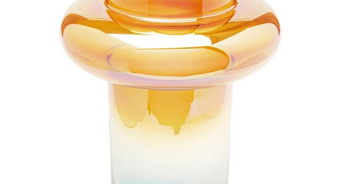 Ваза из цветного стекла в оттенках синего и оранжевого.